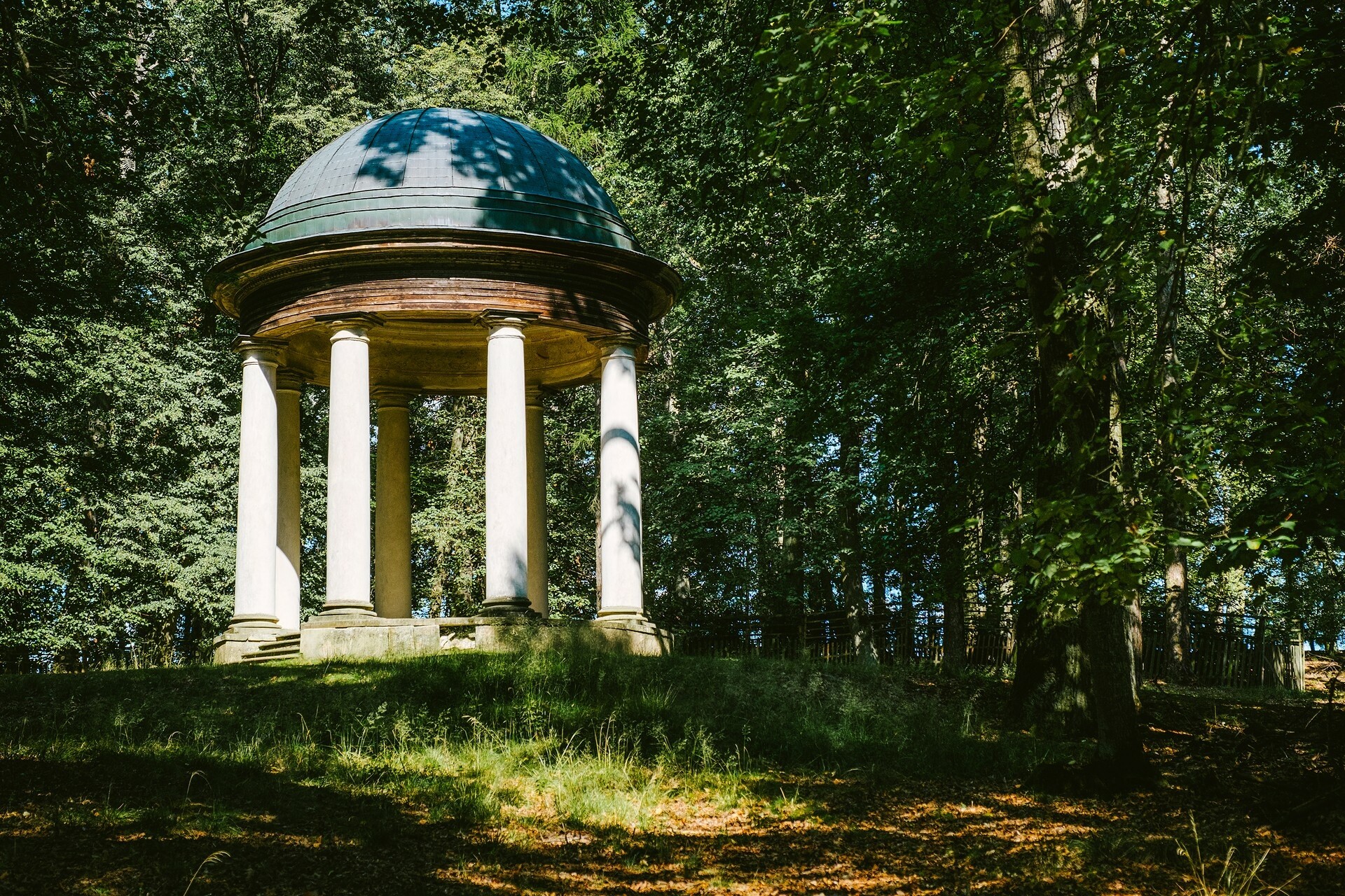 Putování začněte u Jinošovské obory, jinak zvané Schönwald. Projdete se po cestičkách mezi staletými duby, modříny a lípami. Kromě přírodních krás tu na vás čekají také tři altány. Jeden zasvětili Silvanovi, bohu lesa, druhý Dianě, bohyni lovu, a třetí, který měl sloužit jako hudební pavilon, Apollónovi. Od altánu na kopci máte navíc krásný výhled na zámek Schönwald. Ten je sice nepřístupný, ale obora je otevřená každý den od 9 do 17 hodin a je volně přístupná i pro pejsky na vodítku.