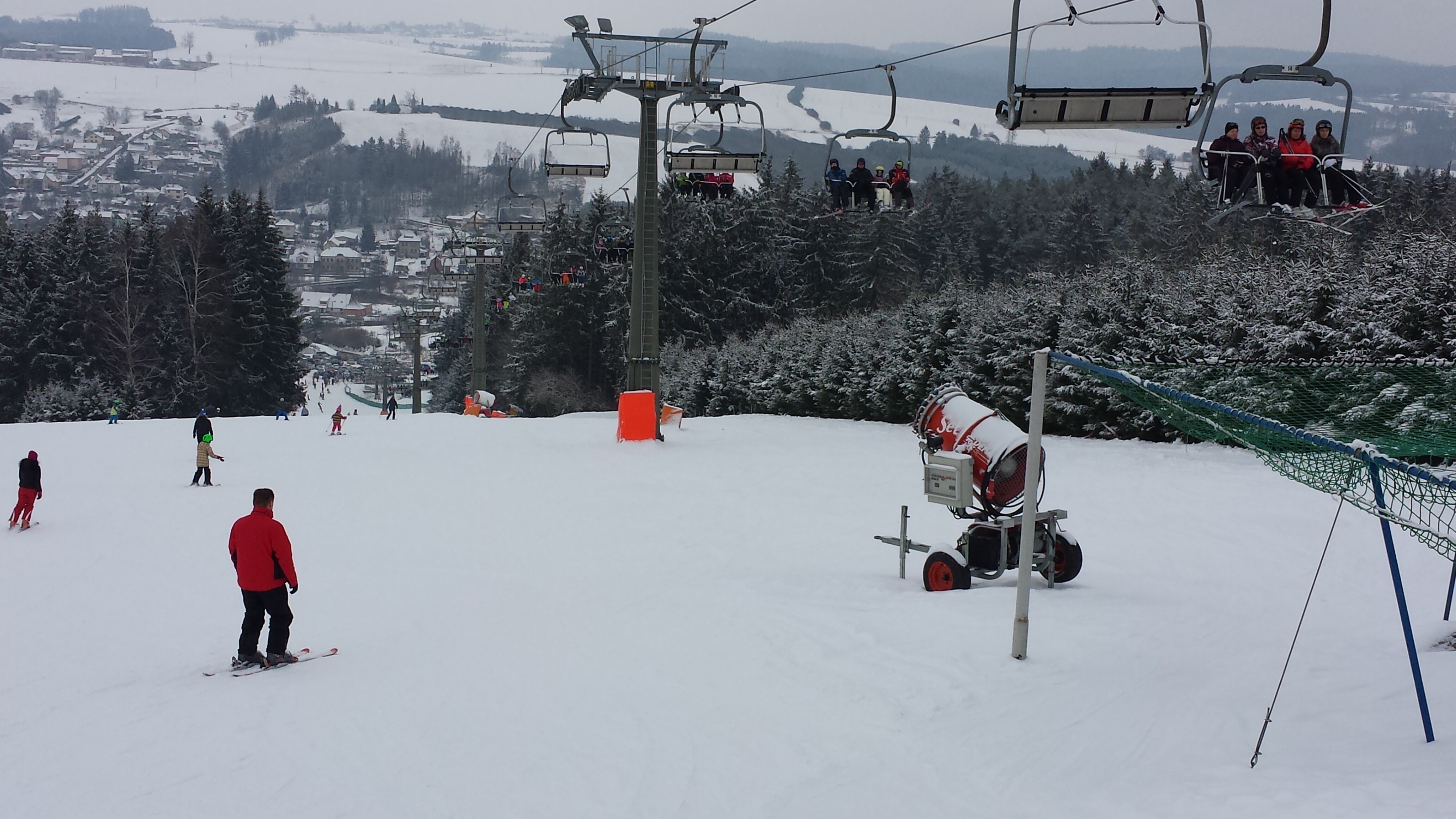 Váš den začne ve ski areálu Luka nad Jihlavou. Lyžování zde je vhodné pro děti, začátečníky, ale i zkušenější lyžaře. Nahoru vás vyveze pohodlná čtyřsedačková lanovka. Dolů se dostanete po modré, nebo červené sjezdovce, obě jsou dlouhé 600 m. Nechybí ani ski bar v chatě Gizela přímo na sjezdovce a pohodlné parkování jen kousek od nástupu na lanovku. Na objednání tu funguje lyžařská škola.