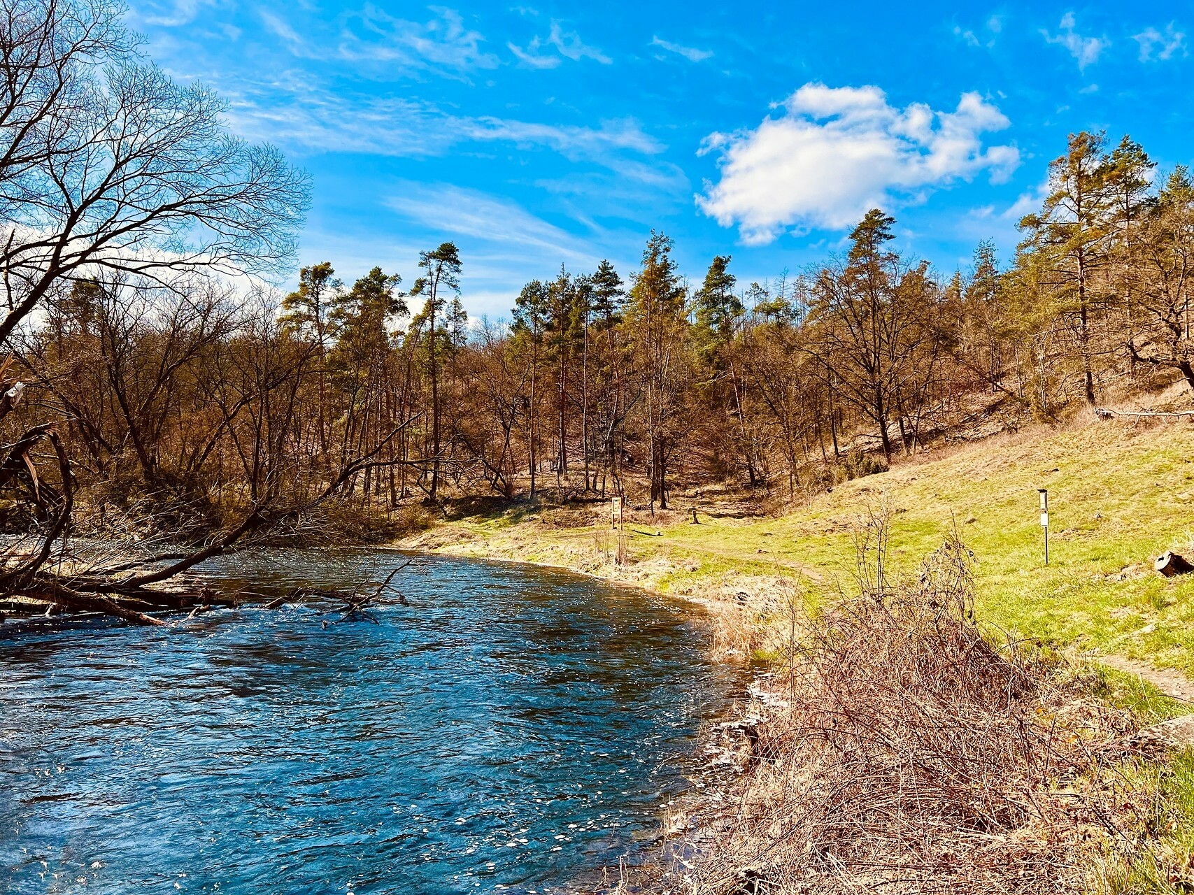 Až si vše prohlédnete, vraťte se po stejné cestě a pokračujte kolem řeky k Mohelenskému mlýnu. Uvnitř něj můžete navštívit Galerii Čertův ocas a prohlédnout si zajímavou expozici. Za mlýnem začne cesta opět stoupat na step, až spatříte meandr řeky se skalnatým poloostrovem na řece Jihlavě, kterému tu říkají Čertův ocas. Nakonec zajděte ještě na vyhlídku, ze které uvidíte mimo jiné i chladicí věže Dukovan.