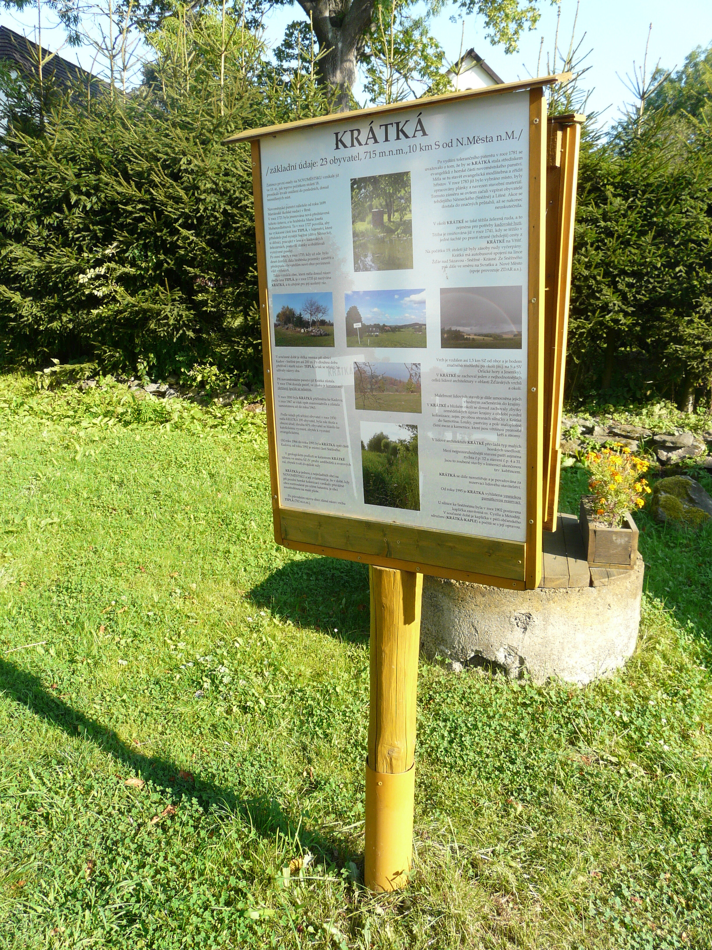 Trasa prochází vesnickou památkovou rezervací Krátká, obcí, která se nachází v srdci Žďárských vrchů. Na své si přijdou hlavně děti.