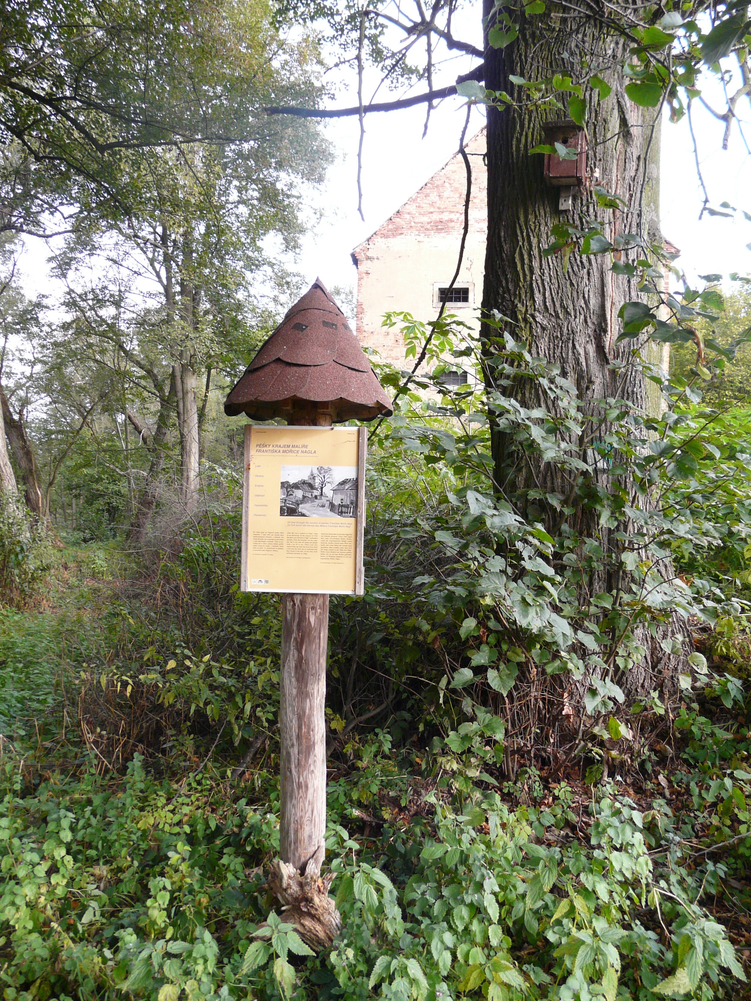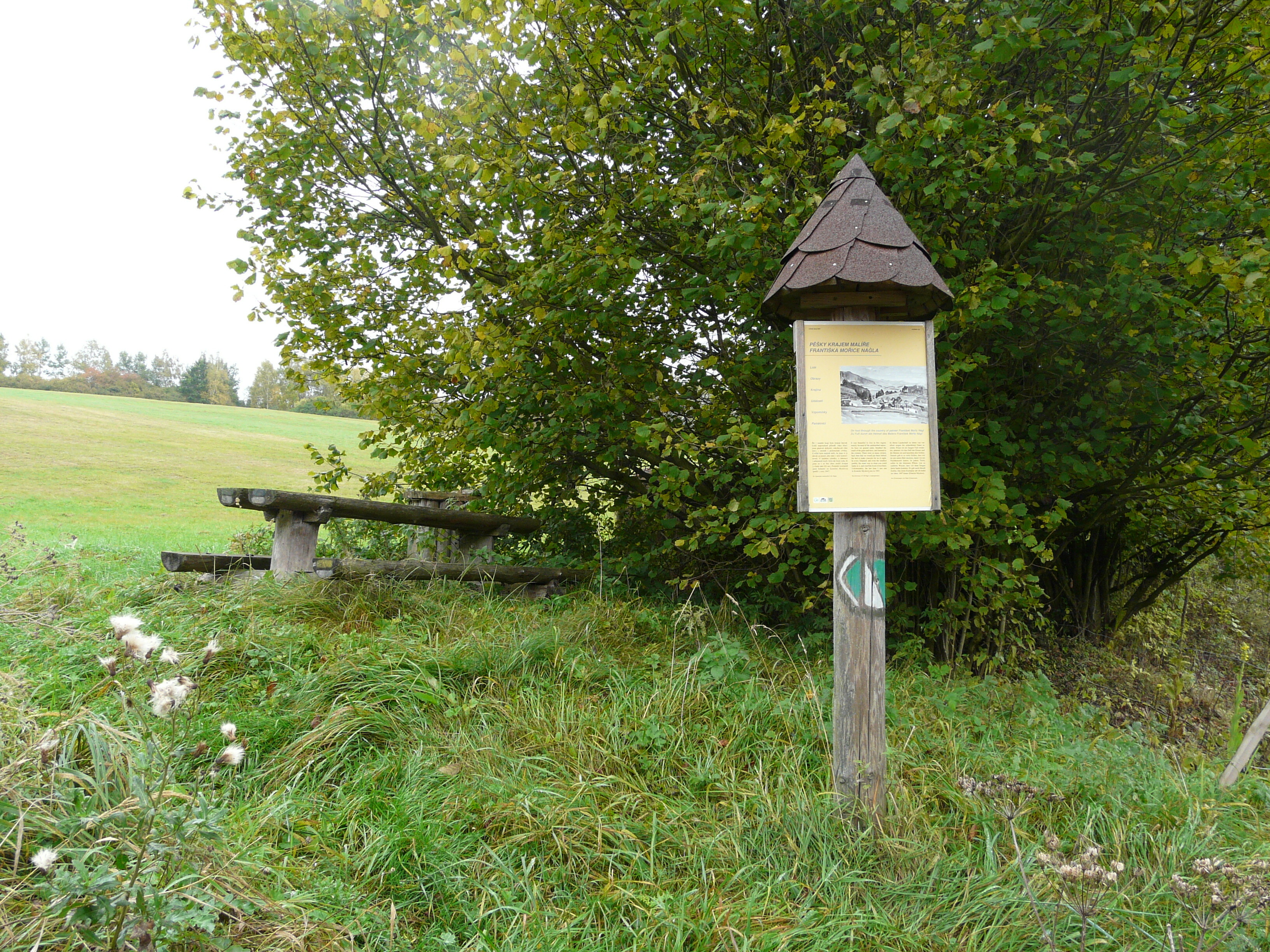 Od mlýna se vydáte po silnici zpět do Kostelní Myslové. Na informačních tabulích se seznámí s tvorbou a životem akademického malíře Františka Mořice Nágla, s historií obce a s osudy lidí žijících v tomto kraji na počátku 20. století.