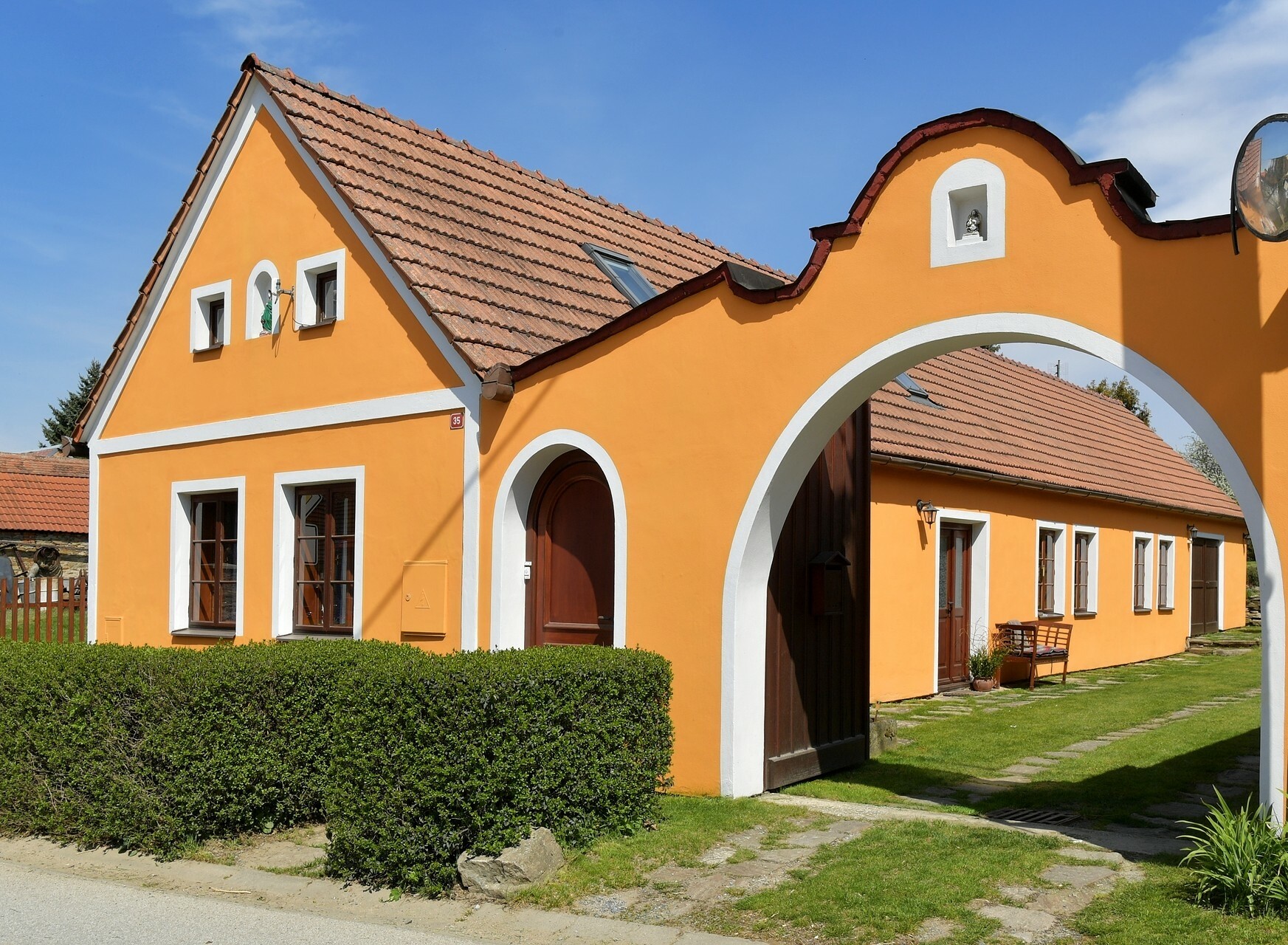 Cesta pokračuje malebnou krajinou s množstvím křížků a božích muk. Následující zastávkou je vesnice Dešov. Soubor dešovských domů představuje typické lidové stavitelství jihozápadní Moravy. Ačkoliv některé ze staveb se pochopitelně nevyhnuly modernizujícím zásahům, místo bylo prohlášeno památkovou rezervací. Nízká stavení kolem návsi se pyšní zdobenými štíty, z nichž vyniká chalupa čp. 17 se štítem v duchu baroka.