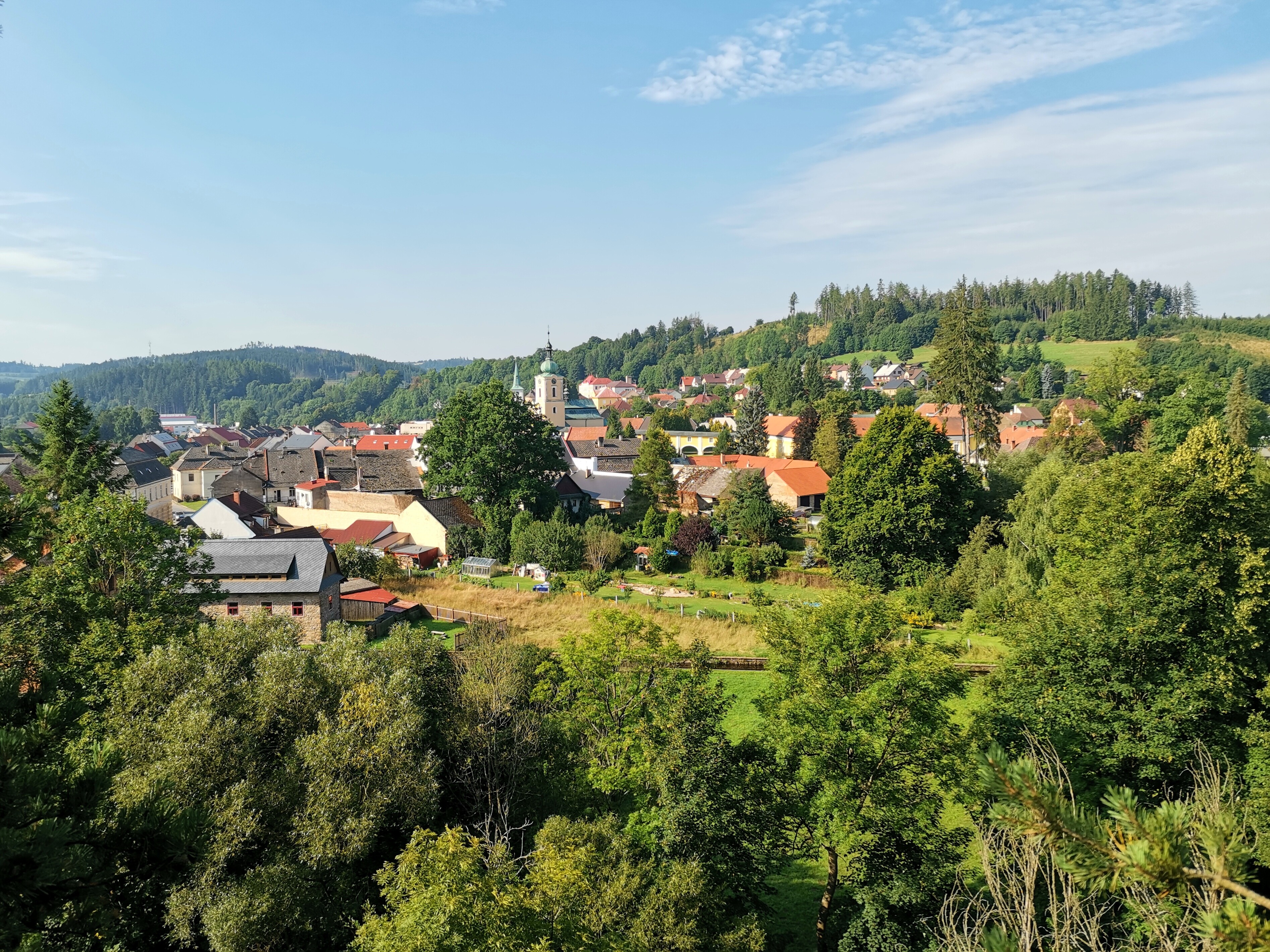 Výlet začněte v Jimramově, malebném městě na horním toku Svratky. Než vykročíte směrem k Trhonicím a dál, projděte si městskou památkovou zónu. Nabízí mnoho zajímavých staveb s fasádami v historizujících slozích. A kromě toho také renesanční zámek, kostel Narození Panny Marie a rodný dům Jana Karafiáta. Určitě se zastavte i v Síni rodáků s expozicí věnovanou významným osobnostem regionu.