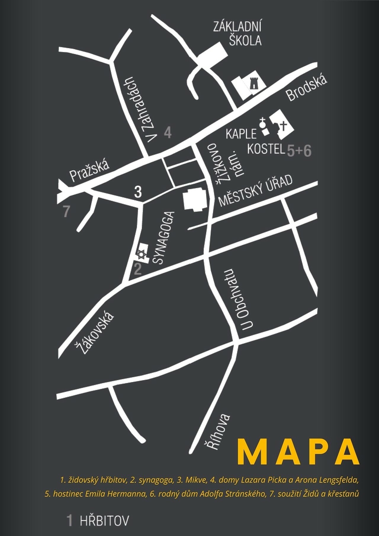 Stezka mapuje životy židovských rodin a podniků, stejně tak jejich tradice. Při procházce se setkáte s dřevěnými "totemy" označujícími jednotlivé zastávky. Tady na vás čekají nejen zajímavé informace, ale i otázky a úkoly, které vám umožní pochopit historii a význam židovské kultury ve městě.