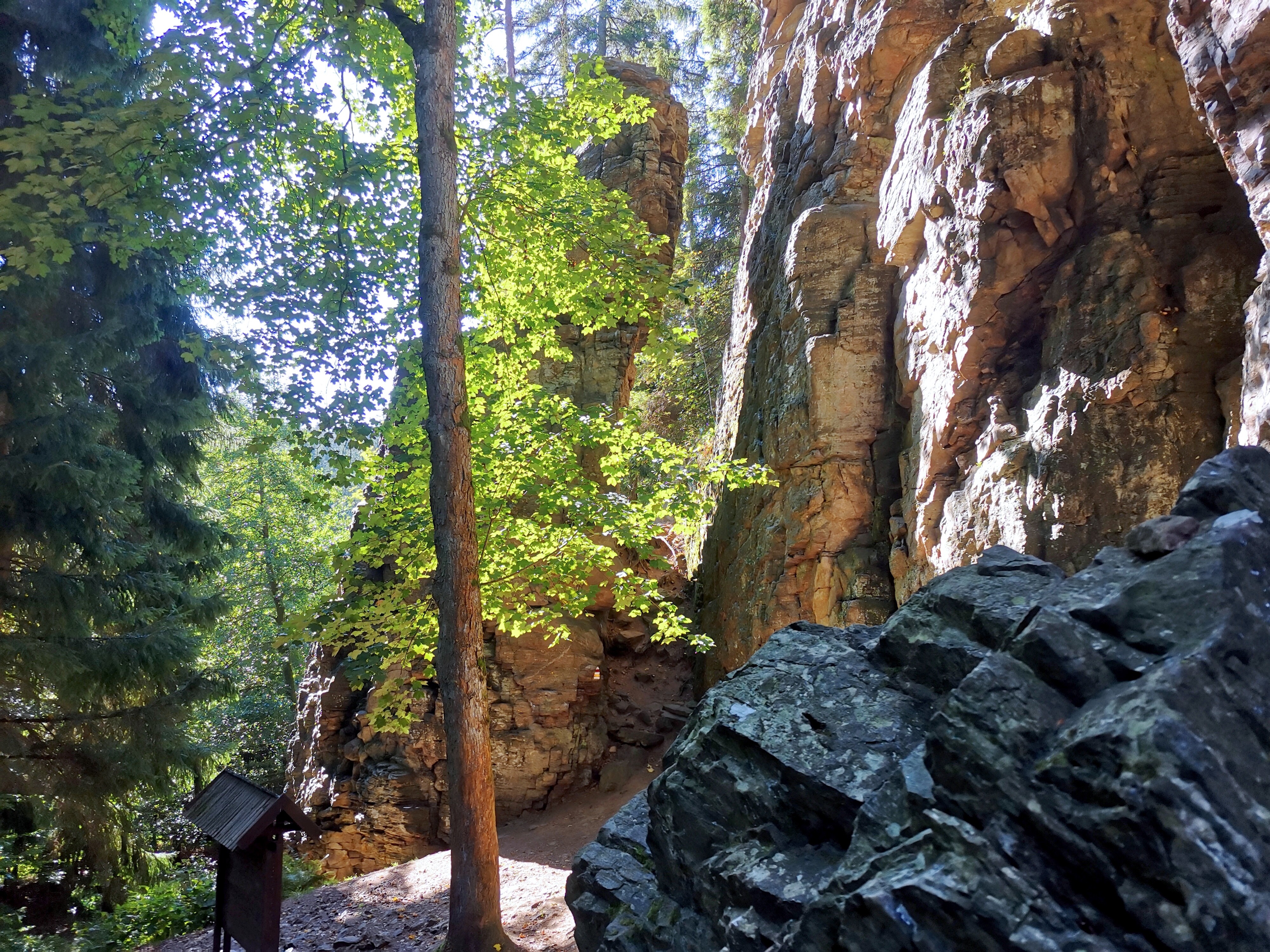 Při toulkách po okolí hamru zavítejte i na nedaleký skalní útvar Rozštípená skála. „Hlídá“ ji mohutná betonová socha hlavy mamuta od Michala Olšiaka. Odsud je to jen kousek k železniční zastávce v Hamrech, kde výlet končí.